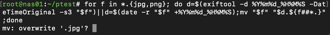 I have `for img in $(ls *.[Jj][Pp][Gg] 2> /dev/null); do exiv2 -r'%Y%m%d_%H%M%S_'"$(tmp=${img%%.*};echo ${tmp##*_})" rename "$img" ; done`whicj does the first part, but fails when no EXIF