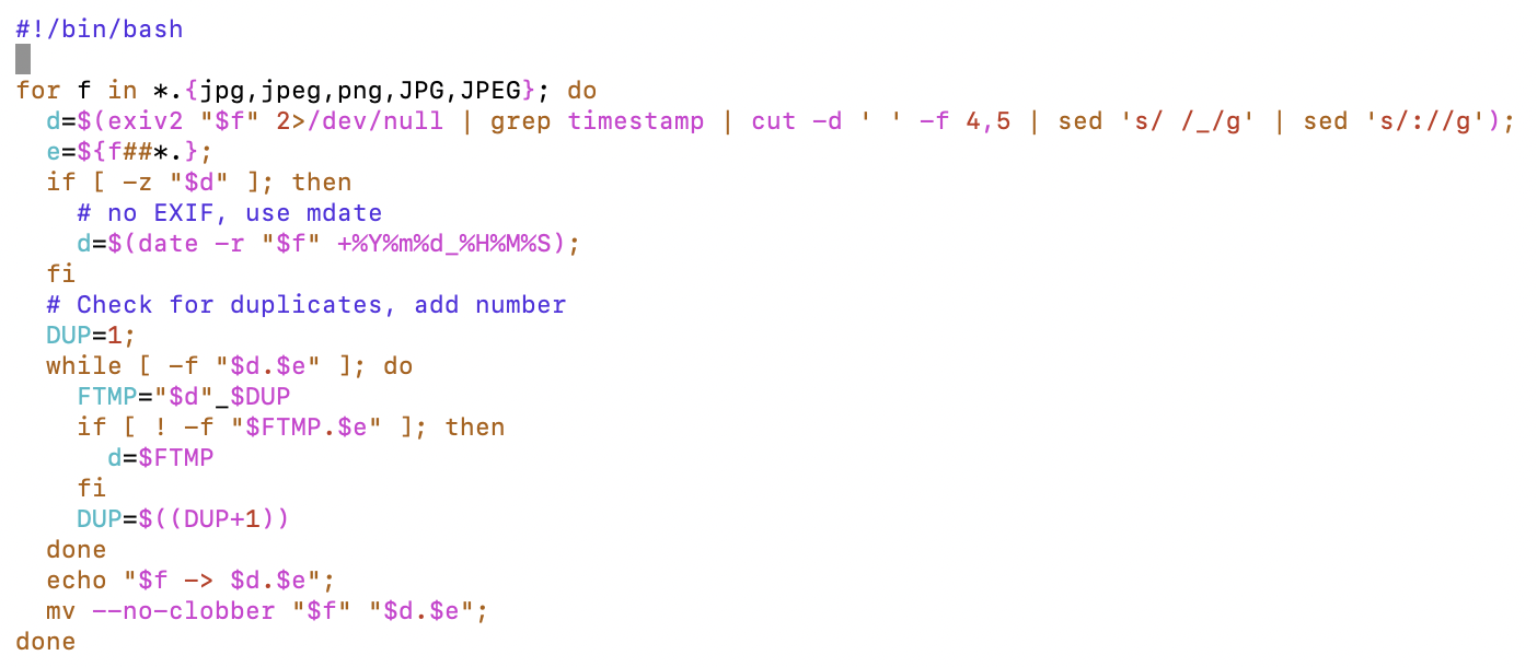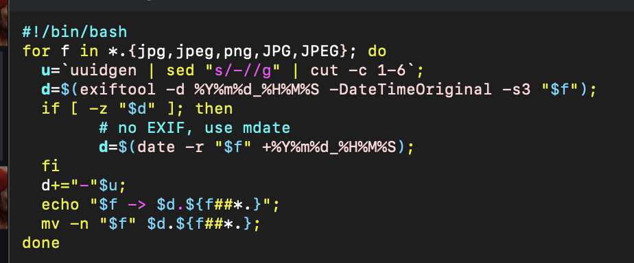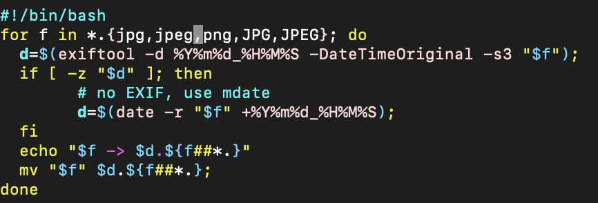 If EXIF is missing or exiftool fails -> the || triggers the fallback "date -r "$f"