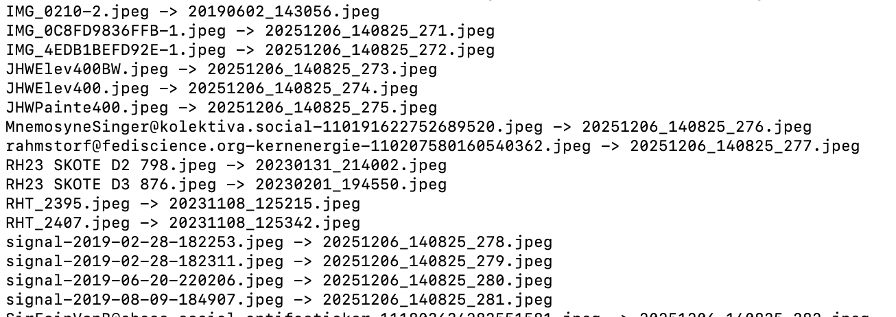 - Check if it has EXIF data and if yes, rename the file to YYYYMMDD_HHMMSS using the EXIF creation date