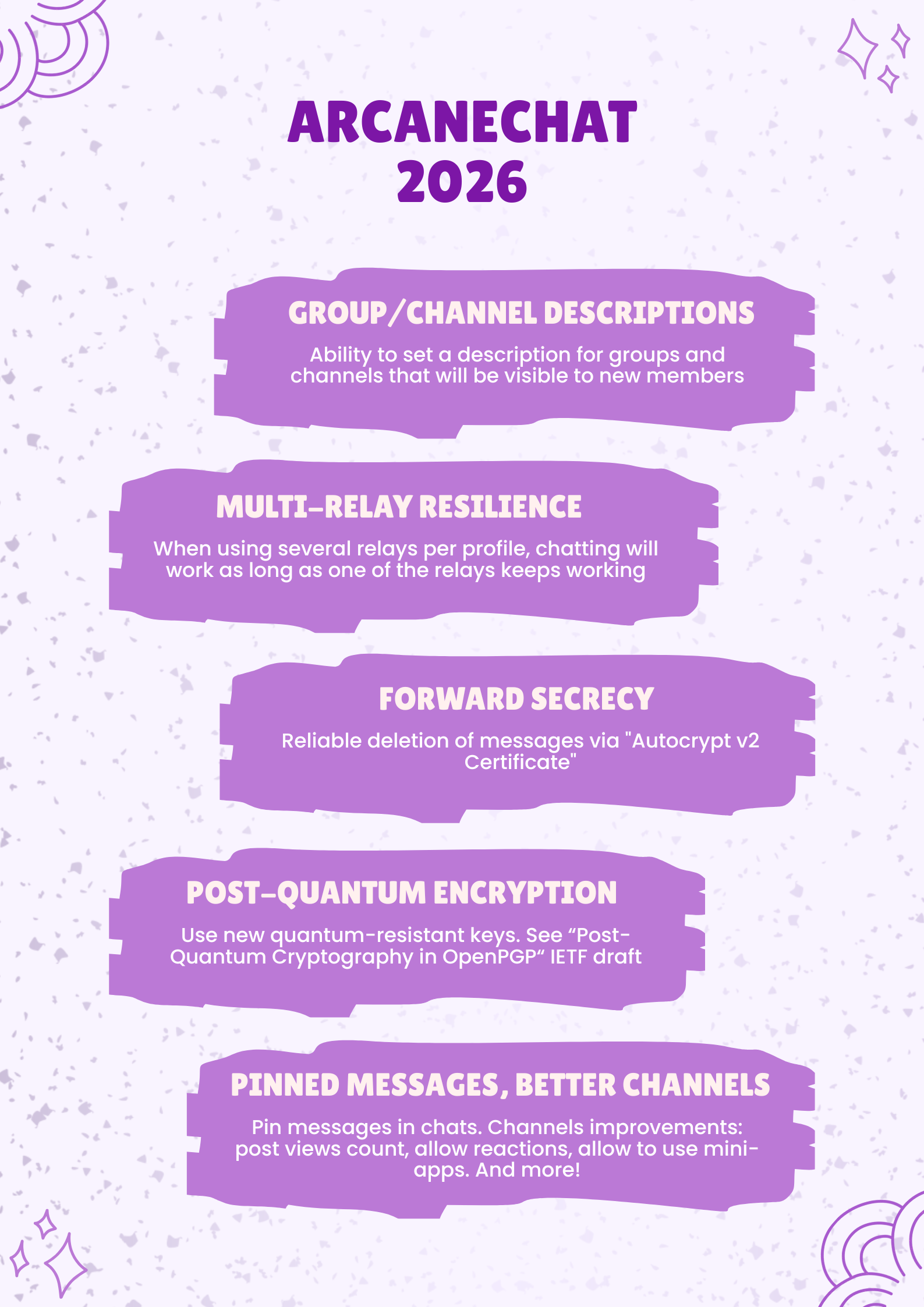 2026 roadmap prediction for #ArcaneChat (and actually pretty much any other #chatmail client thanks to #DeltaChat's chatmail core architecture!)