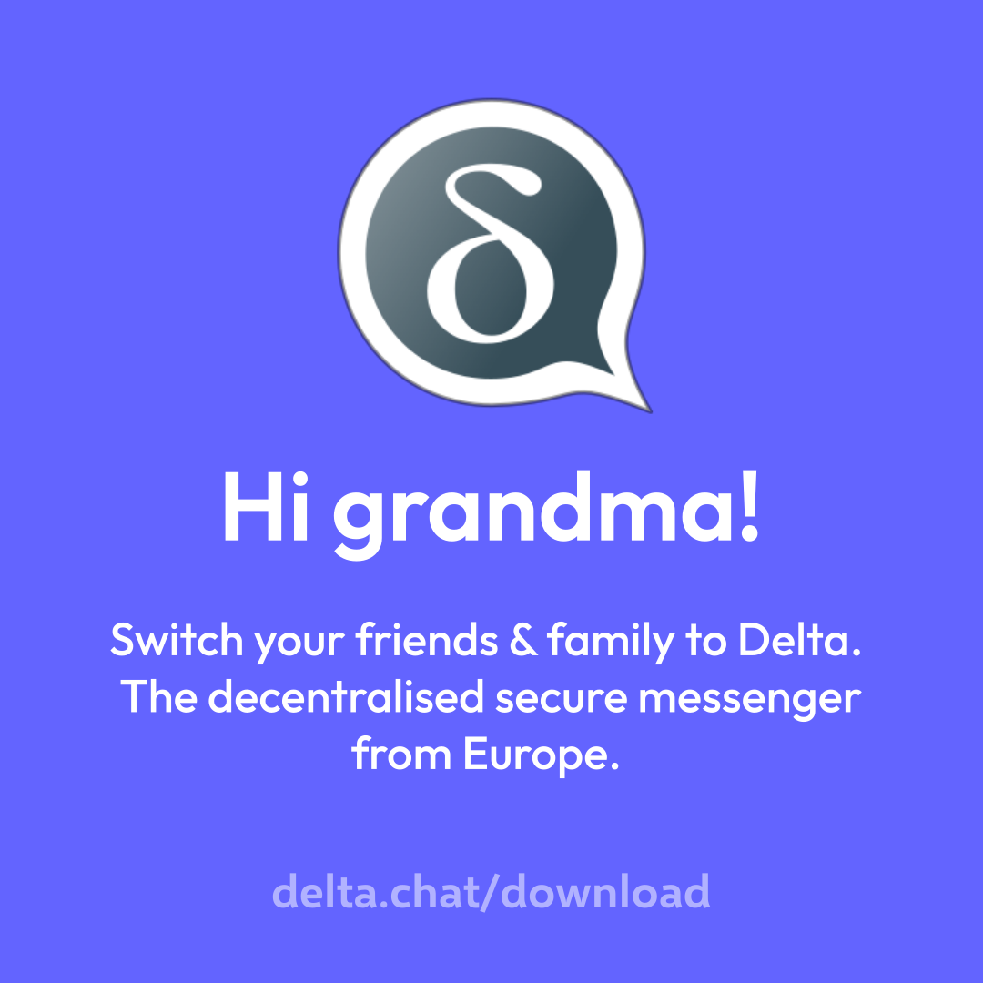 Switch a loved one to #DeltaChat – the decentralised secure open source messenger from Europe.