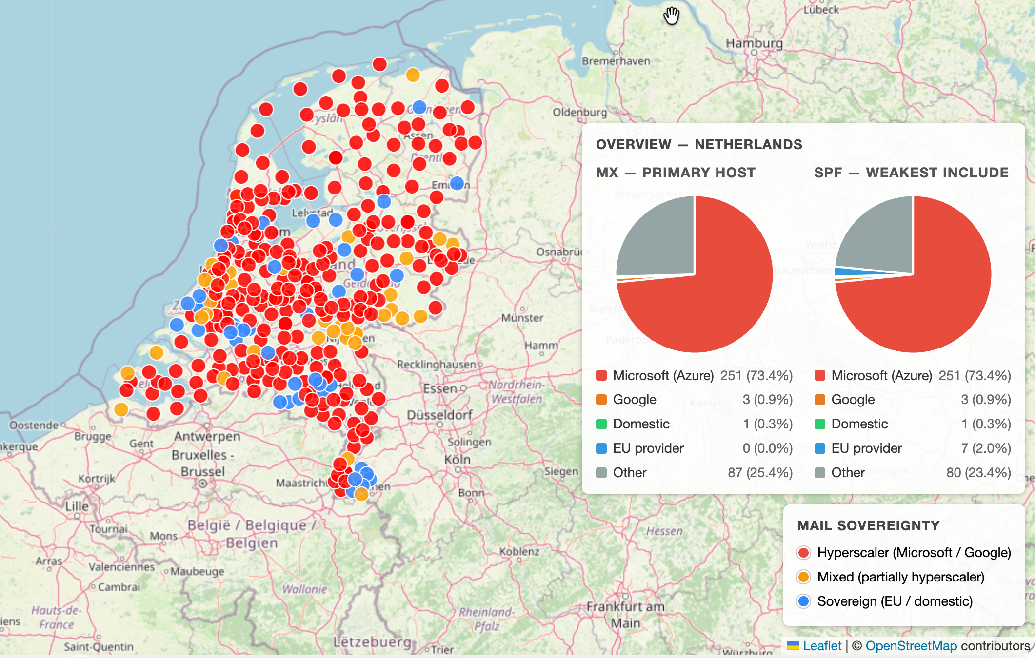 In one year, the dependence on #Microsoft #email among municipalities in the #Netherlands has increased from 60% to 73%.